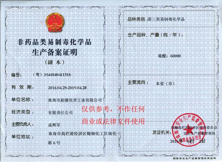 非藥品類易制毒化學(xué)品生產(chǎn)備案證明